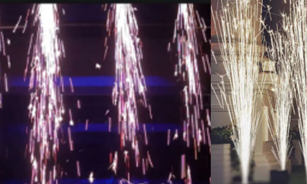 The item is a brand-new generation of spark special effects machine, which adopts upgraded technology and uses standard DMX signals for control. It adopts a uniquely designed powder conveying structure, which has changed the traditional cold firework display concept and the principle of traditional gunpowder fireworks. The design is perfect and the appearance is compact. The machine is only for hanging use. The unique design of the nozzle position makes the spray effect of the machine more wonderful and gives people a more unique experience. This product is highly safe, easy to operate, has high brightness, generates little smoke, is environmentally friendly and does not cause pollution. It can strongly enhance the on-site atmosphere and is highly favored by stage designers and festive venues.